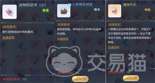 宠物经验书:用于提升宠物的经验值,让宠物升级。
