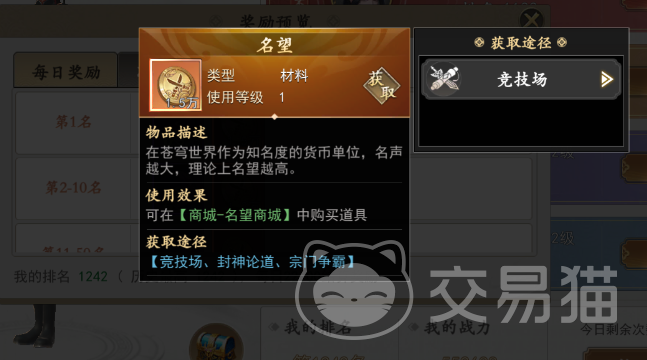 这个玩法是推荐每一个玩家都去进行参与的!同时还开设了十分有意思的竞技玩法!竞技玩法分成了两种,第一种就是普通的竞技场玩法,每天都可以挑战五次,而且是在晚上的10点按照排名来进行结算!获得第一的玩家是可以在本次玩法中领取到1.5w的声望奖励的!