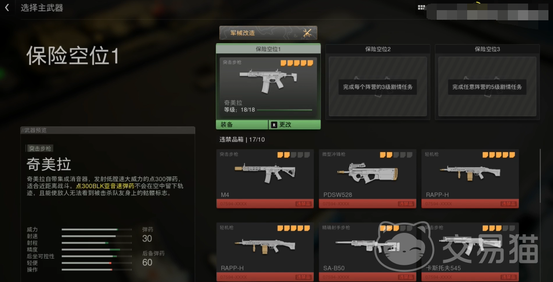 这时就可以看到仓库界面,其中包含了拥有的所有物品,按照不同的类别进行分类。可以在屏幕顶部的标签栏中切换不同的类别,例如“武器”、“载具”、“特遣队员”等等。使用起来体验感还是不错的。在仓库界面,可以对物品进行各种操作,例如查看物品的详细信息、装备物品、出售物品、升级物品等等。