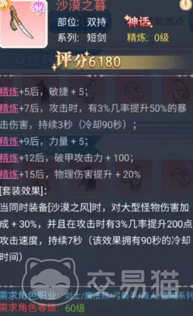 双刀流派的基础,装备需要两把攻击武器,这两把攻击武器的获取难度非常强,收集起来非常困难,就需要玩家进行大量的收集和氪金。而拳刃的收集效果就比双刀要更快一点,而且拳刃的装备很容易就能在副本中刷出来,比较适合普通玩家。