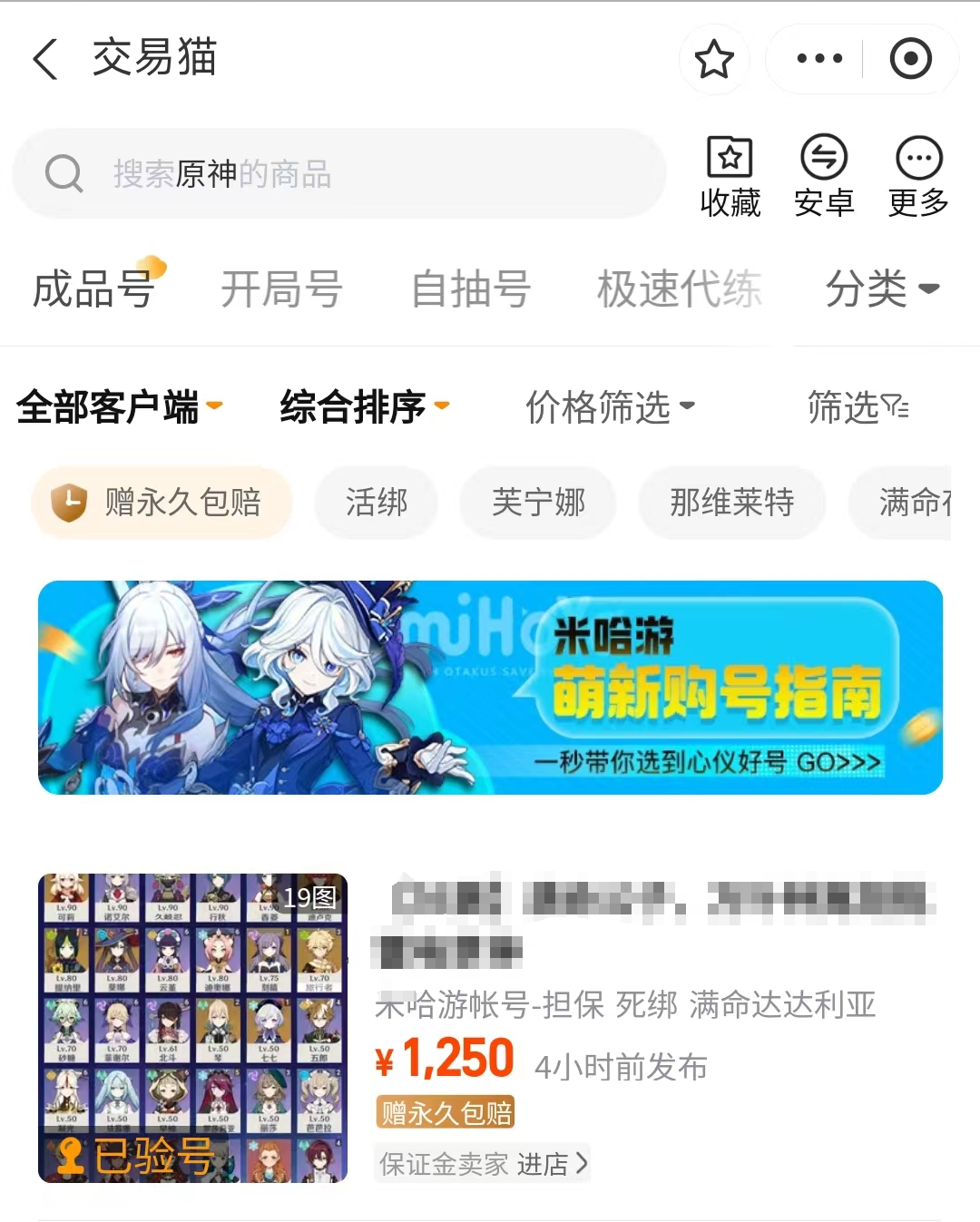 交易猫的平台拥有很完善的功能,比如说可以区分成品号以及首充号,这种账号的区别多用于抽卡游戏,比如说市面上的二次元游戏,如果能在前期抽到厉害的角色那么对于开荒期的帮助是巨大的,但是一部分玩家的就是比较非,抽不出想要的角色,那么就需要通过二手交易平台进行购买了,那交易猫的优势就出来了,能快速识别账号内的角色内容,还有对应的等级以及练度,确保双方的信息是公正透明的。