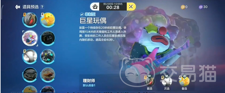 最后推荐巨星玩偶这个道具,主要的作用就是在这个玩偶周围的NPC会受到影响,NPC会跟随者这个玩偶一起跳舞,所以破译目标的行动会遭到中断,这样作为天狼星就可以安心在一个固定的角落进行破译的工作了,但是因为道具比较大,所以比较引人注目。