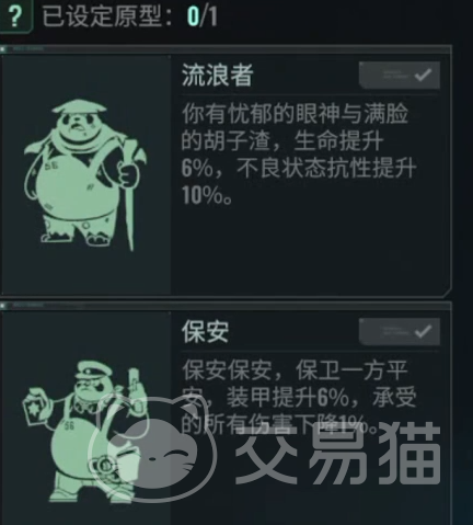 在游戏刚开始建立人物造型的时候,玩家们在捏完了脸,便会出现一个原型的选择,玩家们需要从中选择一个原型来伴随自己的一生。这个原型玩家们可以将其看作是一种天赋。这个天赋需要和玩家自己今后打算所选的路线是要比较可以配合才可以。