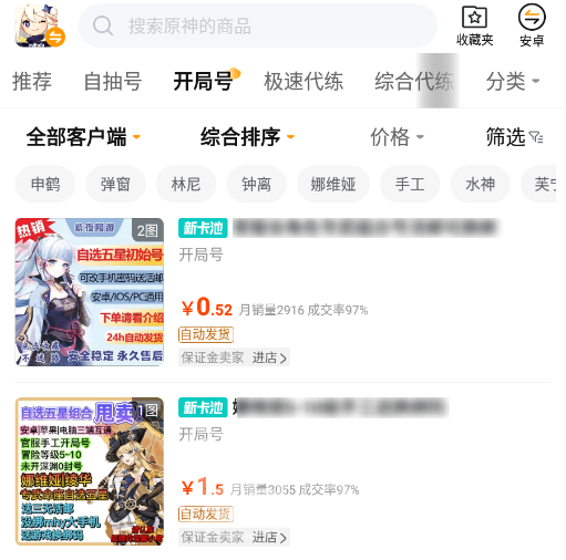 以上就是关于交易猫这款原神买号市场介绍的全部内容了,不管是高等级、高进度的优质成品号还是带有一些强力角色、更加适合新手入门使用的初始号都可以轻松找到,而且带有的安全保障机制也比较齐全,值得我们信赖!
