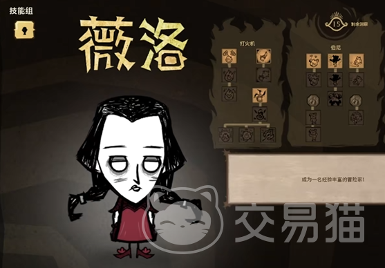 薇洛;这是一个出生自带装备的小女孩子,在游戏中拥有非常不错的机制,从地图中出生的时候,会随身携带一个打火机,这个打火机的用处就比较大了,可以使用打火机来点燃周围的物品,由于薇洛的背景故事,让薇洛是不怕火焰的;第二个携带的物品是一个玩具熊,当打火机损坏的时候,大家就可以召唤出这个玩具熊来修复这个打火机,当自身的san值比较少的时候,大家应该都知道吧,会遇到一些很可怕的影子怪物,而薇洛如果靠近火源的话,是可以回复很多san值的,这个对于新手玩家而言是非常的重要的!这个特点让薇洛更加适合新手玩家去进行选择!