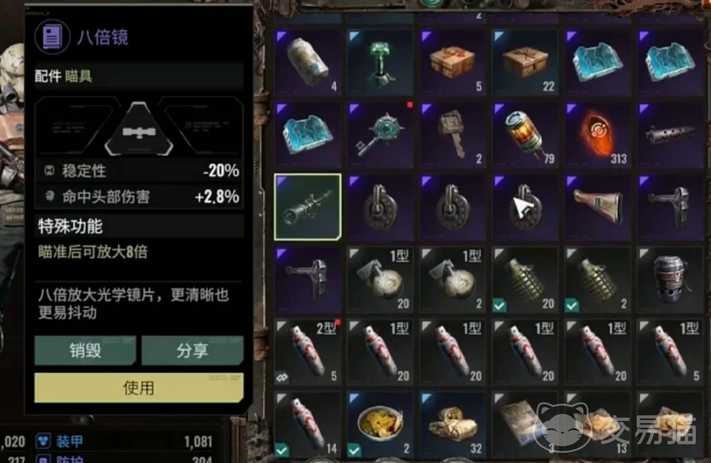 首先,第一种便是在仓库当中进行直接的分解销毁。这种比较推荐各位再遇到一些实在不咋地的武器配件和装备的时候使用。可以直接进行销毁并获得一定的资源,比较的快捷,但回收利用率较差。