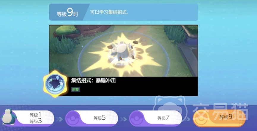 第二个初始技“睡觉”倒是和盾山关系不大,使用后会直接躺在原地睡觉,睡觉期间恢复自身体力,并会挡住敌方宝可梦的去路,它唯一能和盾山关联到的地方就是这招能回血,盾山的大招正好也可以依附防御塔回血。