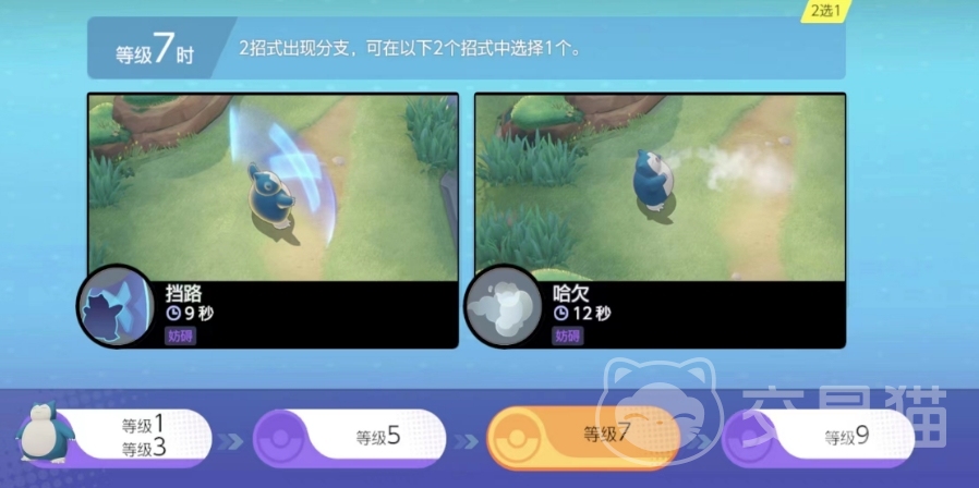 七级时卡比兽又会迎来两个供它选择的技能,第一个是“挡路”,效果张开双臂形成一堵无法通过的墙并获得护盾,敌方宝可梦每次接触这堵墙都会被击退,这招和盾山的大招简直一模一样,不过少了敌人撞上后受到伤害的效果。