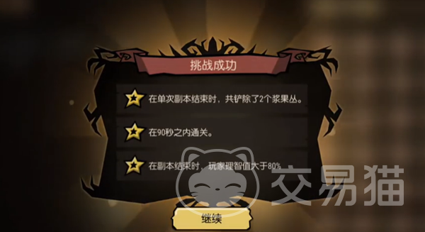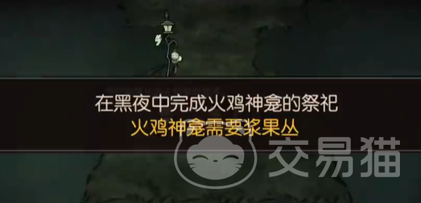 这个任务的要求是我们在黑夜中给火鸡神龛提交贡品,也就是浆果丛了。首先来说说三星达成的条件,第一个就是时间限制在90秒之内,第二个就是玩家的san值要>80%,所以不长时间暴露在黑夜中。第三个目标是我们需要铲除两个浆果丛,不能多也不能少。
