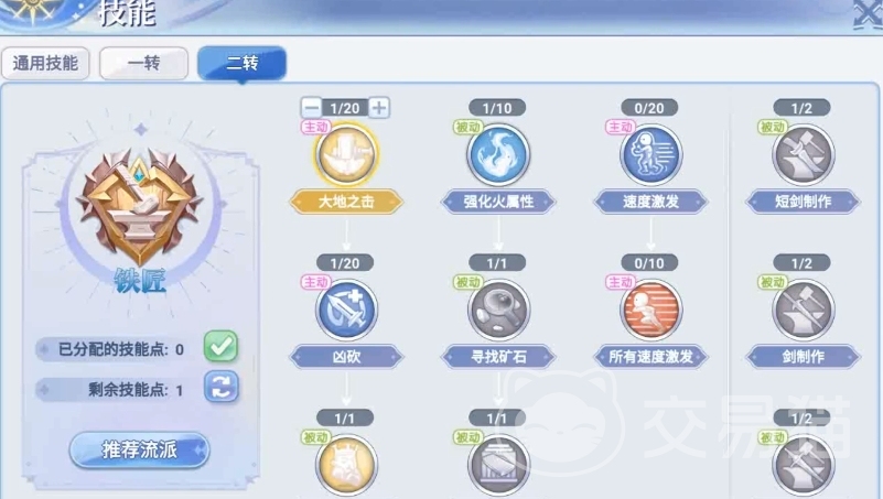 在这里大家能通过学习各类技能来强化铁匠的战斗力,包括利用材料来打造不同类型的装备,而凶砍这个技能是铁匠的主动技能之一,玩家在使用以后能够增加自身的432点物攻,这个效果会持续15秒左右的时间。