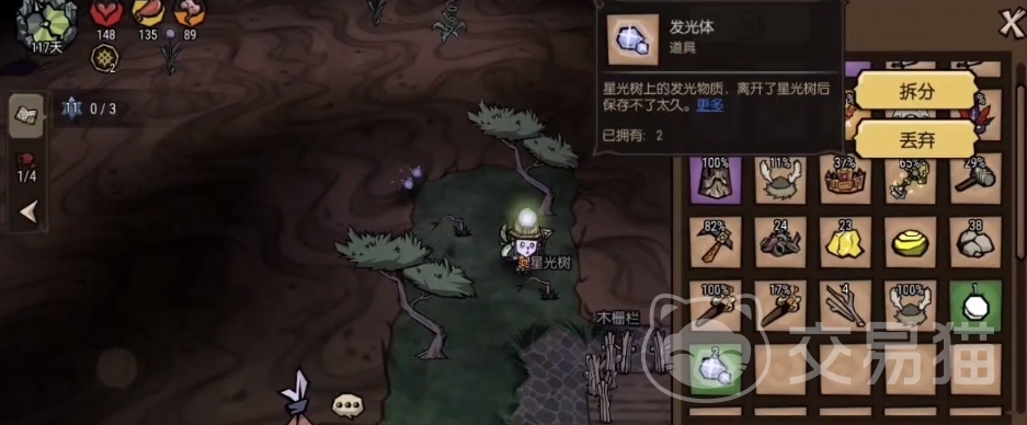 大家可通过去制作发光浆果的方式来合成获取发光体,其中需要用到荧光草,这是在地下洞穴生存的植物,玩家在采集到以后,就能去通过科学极其来合成了,当然利用采摘星光树的方式来获取发光体也是最为便利的。