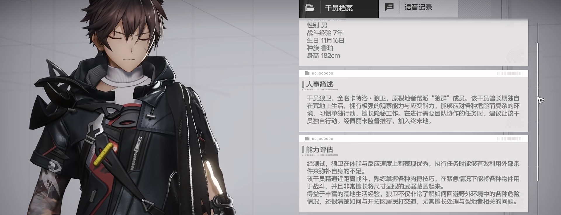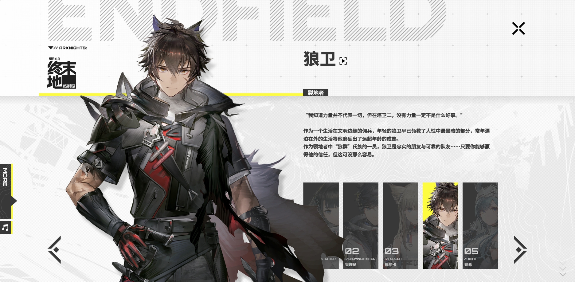 在目前明日方舟终末地新出的9人中当中,明日方舟终末地狼卫,是一个饱受玩家讨论的角色,作为一个跟前作德克萨斯相类似的人物,狼卫无论是技能还是性格方面都与德克萨斯相类似,被广大玩家戏称为男版德狗,那么狼卫在明日方舟终末地中又将扮演一个什么样的角色呢,这一期小编将带领大家一起走进狼卫,看看到底怎么样吧。