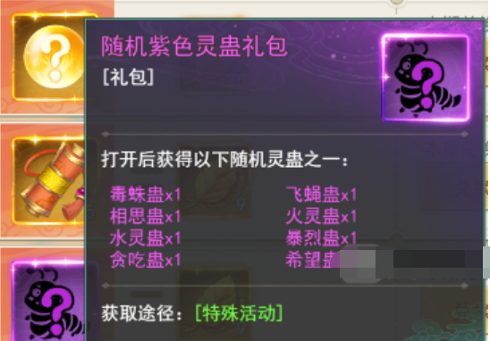 最后一个方法就是购买商城商品。游戏中有一个商城可以使用金币、钻石、元宝等货币购买一些商品,其中就包括灵蛊。如果有足够的货币可以在商城中挑选你喜欢的灵蛊,或者购买一些灵蛊组合包但是只能获得随机的灵蛊。如果不知道哪种最适合自己的话可以试试灵蛊图鉴查找一下,而且在这里还可以查看你已经收集的灵蛊,点击激活按钮,可以获得一些奖励,同时提升图鉴等级,增加全体伙伴的属性。