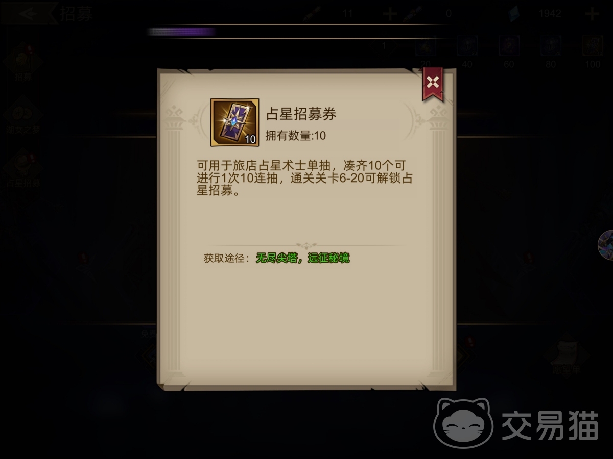 因此,玩家可在阵容构建完成后,将抽卡卷(普通、阵营)都积累起来,用于换取占星卡。钻石少的玩家可每天在商店里买打折的抽卡卷,通过积少成多地方式完成积累,而钻石多的玩家可直接用钻石在全角色卡池中进行抽卡,加快自己获得占星卡的速度,但要记得留出足够的钻石买每天都会刷新的打折抽卡卷。