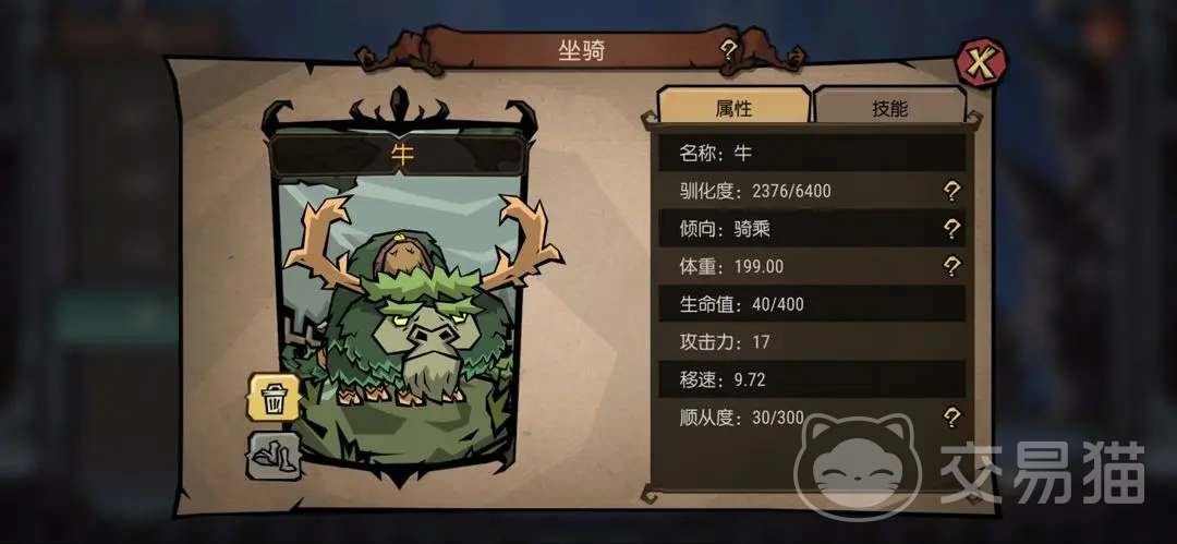 接下来就可以到坐骑的页面里面去查看一下,可以看到自己所拥有的坐骑的属性,另外可以选择放生的坐骑,也可以去驯化坐骑,让自己坐骑的驯化程度提升,可以通过战斗,骑行,以及喂食等方式来对坐骑进行养成。