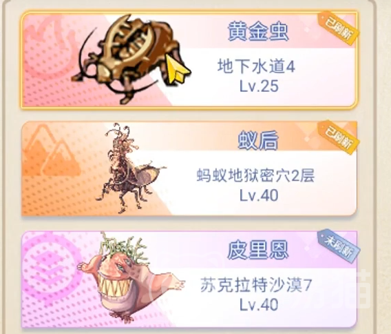 玩家们如果需要去刷这个BOSS的话,那么首先要做的事情便是先在MVP的表里面确认下黄金虫是否已经刷新,如果刷新的话再去前往进行狩猎。一般游戏内每天都有3次刷新,玩家们需要合理利用时间前去寻找它。