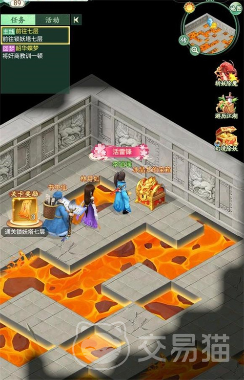 到达锁妖塔的六层,找到冰晶女的位置。冰晶女是一个被困在冰块中的女子,她的身边有一个带锁的宝箱。玩家和她对话,她会说她的宝箱里有她最珍贵的东西,但是她没有钥匙,只有她的爱人才能打开。她让玩家帮她找到她的爱人,他的名字是书中仙。