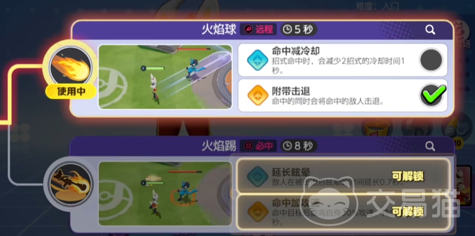 考虑到国服更快的节奏,局内宝可梦的进化也会相应提前,以“闪焰王牌”为例,国服5级就可以进化,大家的“皮神”更是5级就会获得“大集结”招式。除此之外国服的技能需要在对局之前设置好,进入对局后技能升级会按照提前设置好的技能来升级,无法更改,少了一些临场变化,但也更符合大多玩家的习惯。宝可梦的技能需要通过升级相应的羁绊,简单说就是多玩就好了。