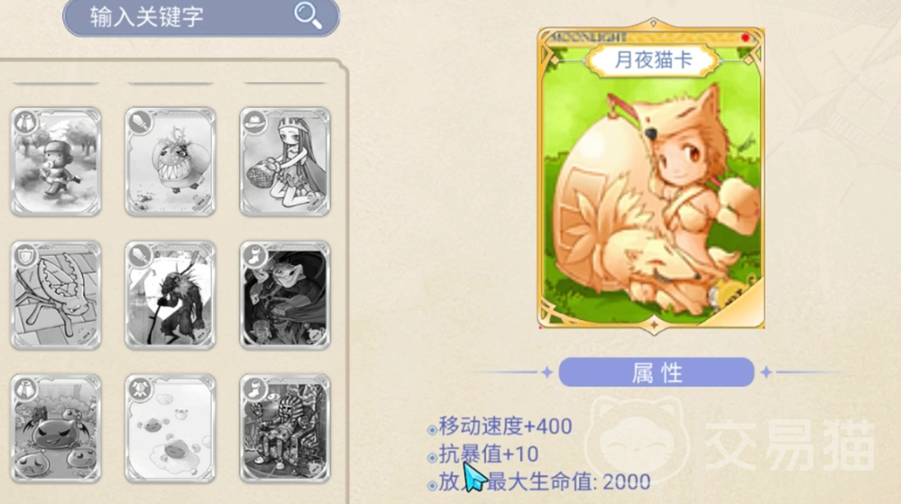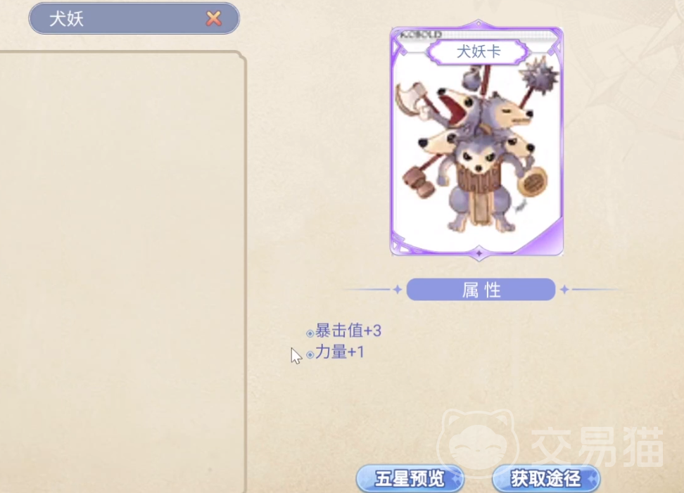 狼卡:物理攻击力加5,暴击值加1。这是物理系职业平民卡最牛的卡片,因为获取难度较低,也很容易堆到满星,增加属性点更多。
