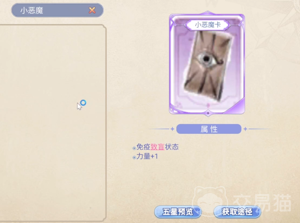 小恶魔卡片:免疫致盲状态,力量增加1。