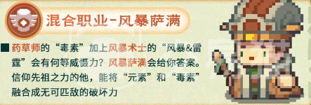 在游戏中一个职业除了有基础形态之外,还有混合形态,这个混合形态指的就是双职业的形态,这个新职业可以和战士、风暴术士、射手、通灵师进行组合,在和它们组合之后就可以得到荒野战士、风暴萨满、丛林射手和德鲁伊这四个新的混合职业。