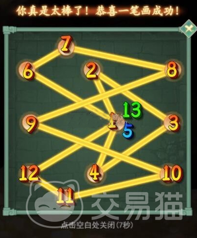 如果你身在腹黑之水镇的话就可以尝试根据图片上的顺序,用一笔将所有的笔画连接。完成之后就便可打开你的宝箱,接着还需要点击空白处才可以关闭,并成功获得奖励。