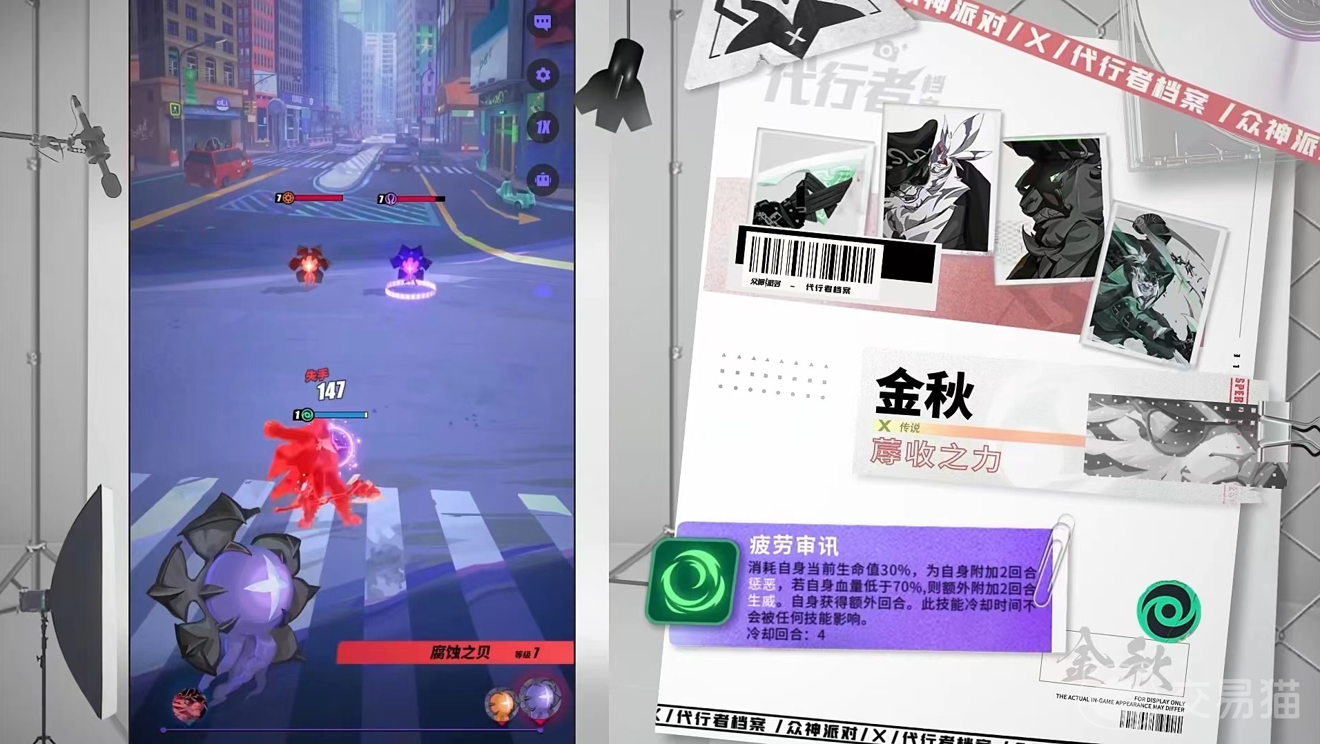 金秋是一名属于中国的神话角色,在战斗中擅长以暴制暴。第1个技能劈砍,攻击敌方一个单位后造成真实伤害,真实伤害能够无视对方防御,数值非常高,而且按照自身防御力进行加成。如果此时自身拥有惩恶效果,可以额外攻击两个目标,并为主要输出目标附加两个回合定罪效果。第2个技能疲劳审讯,以牺牲自身当前30%生命为代价,为自身附加两回合惩恶效果,如果此时自身血量低于70%,则额外附加两回合生威,获得额外回合。此技能冷却时间不会受到其他任何技能削减影响,固定为4个回合。