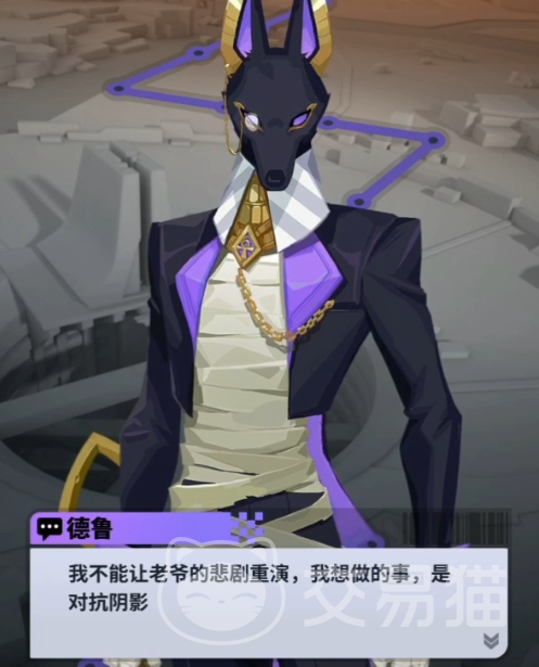 阿努比斯是一位死神,在游戏中作为代行者的德鲁总体造型非常优雅,作为管家大多时候德鲁都是比较随和的,戴着单边镜,绑带裹着的左手还有蝴蝶停留,突出一个高雅。