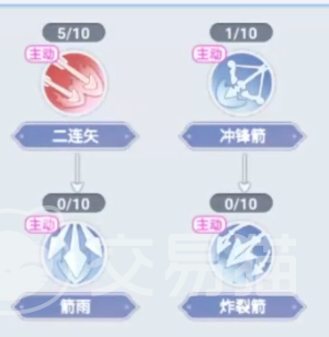 冲锋箭,此技能有着一定的击退效果,但是耗蓝很高,伤害却不是很高。是一个不太实用的技能,玩家们可以点1级或者1级都不点。箭雨,群体伤害,攻击距离较远,但是伤害很低,本身技能的覆盖范围也不是很大,这个技能实用性不高,可以选择不点。