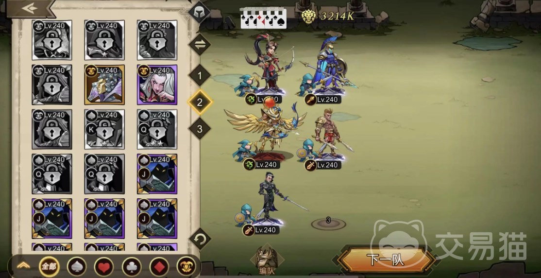 前文已经介绍了游戏里英雄有不同花色和鬼牌的区分,不一样的阵容、牌组加成属性也不一样。前排123号位通常是用来抗伤害,但并不建议3个全是肉,2个肉即可,另一个位置灵活变化,可以是有点坦度的输出,也可以是肉辅。