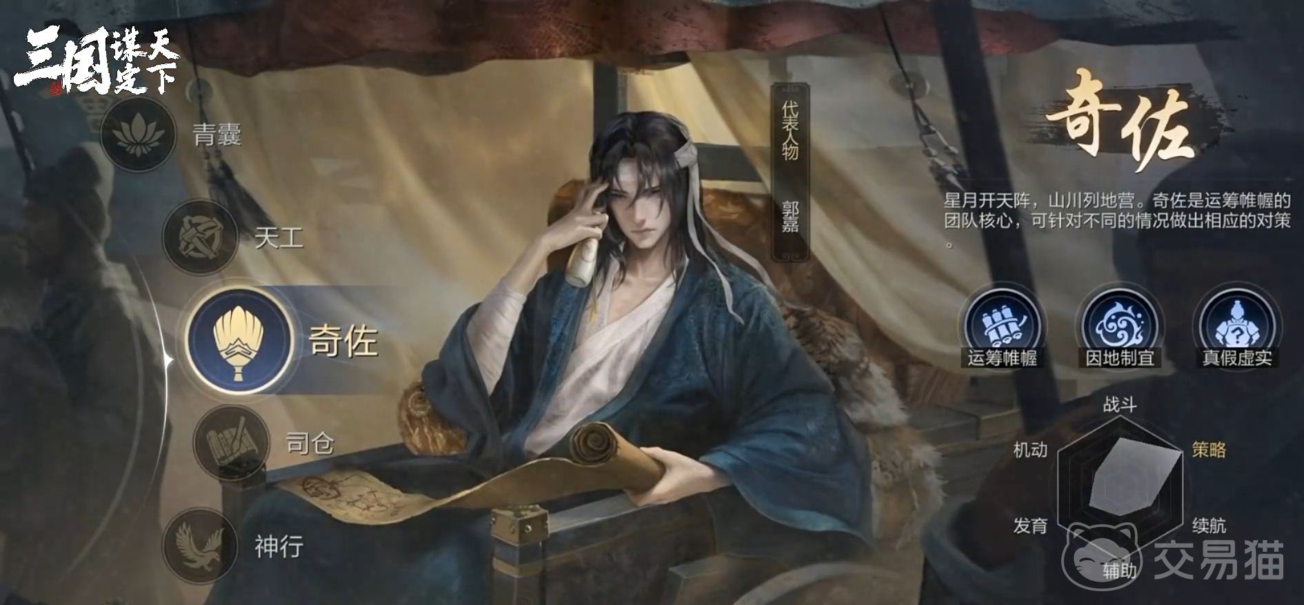 所谓上兵伐谋,其次伐交,其次伐兵,其下攻城。最有名的奇佐之才莫过于我们的郭嘉郭奉孝了,其帮助曹操击败袁绍,声名赫赫。可以说,这个职业就是以超凡智慧以及鬼才计策的谋士为原型。是团队的核心所在,可以针对不同的情况做出相应的对策。