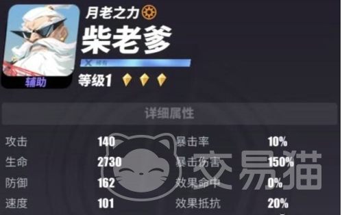 ‘柴老爹的被动技能可以提升自身生命值比例,增强我方角色的生存空间,1技能会攻击敌方全体,同时提升自身百分之25的移动速度,从而拥有更多的输出回合,2技能会随机两名角色提升暴击属性,这个属性的提升比例幅度挺大,就是不够稳定。