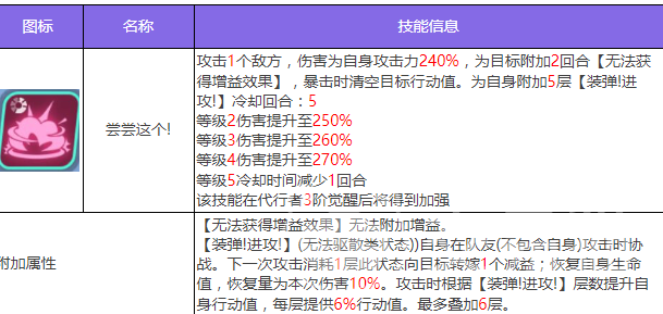 大招是核心技能,对敌方造成巨额伤害,并附加不可得到增益效果的buff以及五层协战效果,这个技能可以让角色在回合外多次进行攻击,并且攻击附加回血能力,使得布拉斯特的生存能力也得到了明显的提升。