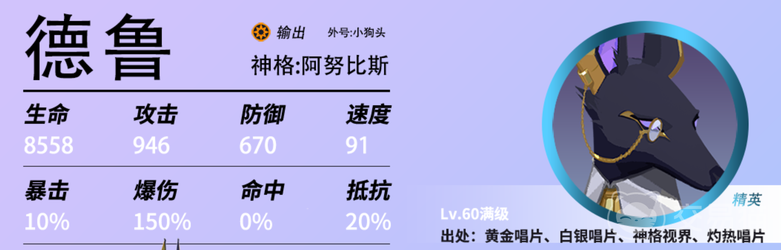 它的攻防属性都非常出众,并且生命和暴击也不差,就是速度略低一些,但因为是前排防守型角色的缘故,所以整体来看瑕不掩瑜。