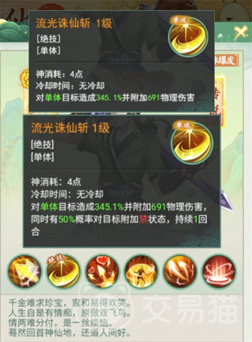 景天的被动技能可以在自己的血量低于一定比例时,增加自己的攻击力和防御力,以及减少自己受到的伤害,这样可以让他在危急的时候更加坚韧和强势。景天的羁绊效果,可以和一些其他的仙剑人物形成羁绊,从而提升自己和队友的属性和效果,比如和云天河、龙葵、重楼等人都有不错的羁绊。