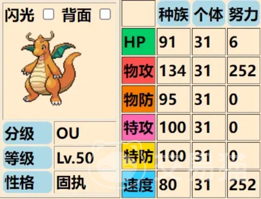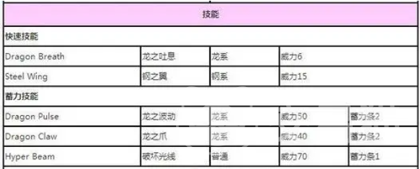 快龙是宝可梦里面的火系宝宝,外表胖萌萌也被玩家称作“肥大”,攻击134,特攻100 ,所以玩家也喜欢搭配双刀快龙,很好破盾,也克制对方的火系精灵。首先,我们系统的过一遍快龙的各种属性特点,才方便后面的搭配,第一个是经典的龙之舞龙系技能,这是用来提升速度的技能,可以搭配“龙爪”攻击一起使用;第二个就来讲讲招牌技能,龙爪,这个技能的命中率为100%,1.5的威力加成,是一个发挥较稳定的主攻,可以搭配任何辅助技能。