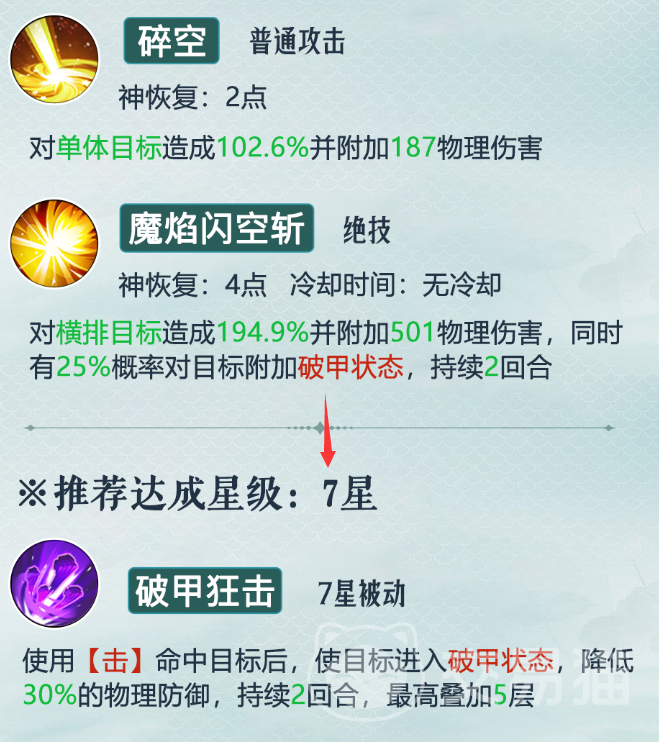 李逍遥:觉醒后的技能是仙剑之威,可以对敌方全体打出伤害,并降低敌方的攻击和防御,同时提升自身的攻击和防御,持续两回合。林月如:觉醒后的技能是仙音之韵,可以对敌方全体造成伤害,并使敌方进入沉默状态,同时提升己方全体的速度和暴击,持续两回合。阿奴:觉醒后的技能是妖狐之威,可以对敌方全体造成伤害,并使敌方进入混乱状态,同时提升自身的闪避和伤害加成,持续两回合。徐长卿:觉醒后的技能名为破甲狂击,是个被动能力,可以在击中目标之后附加强力破甲状态,持续两回合,而且最高层数升至五层。
