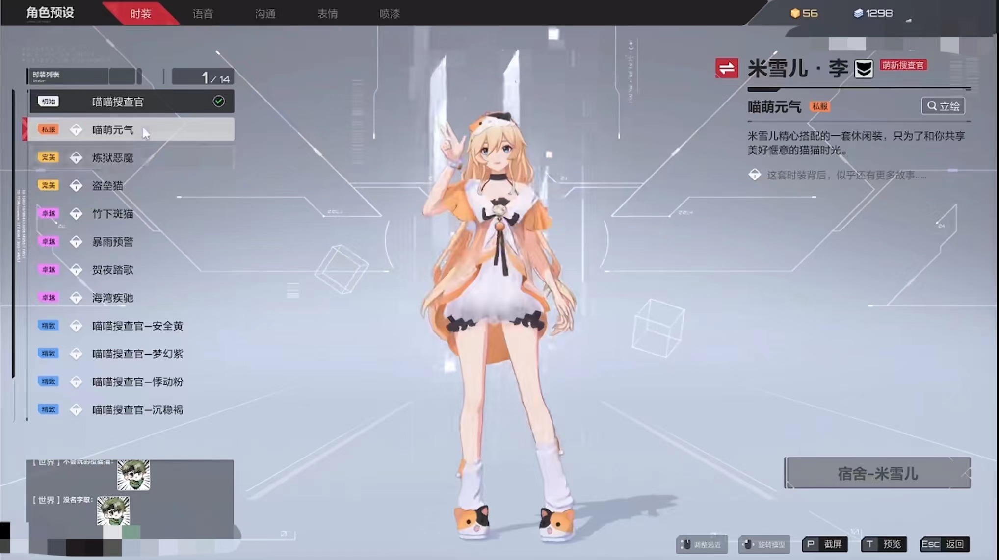 首先就是一个人气角色米雪儿,她的角色皮肤强烈推荐私服萌萌元气,其他的除了炼狱恶魔也可以看个人喜好入。她的武器是M4,其实本身原装的M4整体的一个构造就已经是非常不错的了,带有雷电特效的全垒打和炼狱都是非常值得推荐购买的。