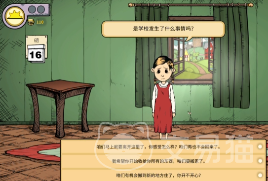 第二个结局是孩子上学没几天就恳求玩家带他搬走,于是就直接带孩子搬家了,玩家在游戏中要留意孩子的需求和表情,才能引导他们说出心里的话,不同的对话会带来正面效果,或是负面情绪,孩子所给的反馈都是不同的;另外一个支线就是没有照顾好孩子,也没有满足他的各种情感需求,于是他就会离家出走提前结束游戏,在这里就不过多的介绍了。第三种结局相对而言最不错,就是在经历了一系列不愉快,决定搬家的时候,玩家写信给孩子的父亲,然后孩子得到了父亲的抚养费,愿意支付一笔费用帮助孩子生活,于是,在远远的从树林边缘看到了国王之后,孩子在肯定了自己的几个好朋友之后,基本还是处于正面的情绪,在带着对玩家的信任和未来的期望中,两个人一起出发了,画面的最后是玩家和孩子手牵手离开,去寻找新的更好的地方。