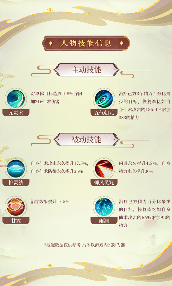 这里小编推荐李忆如用真灵套,这样可以提升它的治愈量,还可以凑一个巫灵使用,它的站位可以靠在前排。当然作为后排也是可以的,不过在打门派boss的时候,如果出现了加血的情况,很有可能造成伤害为零。而且在仙剑谱加上五级的时候就比较难打了。李忆如这个角色适合在群秒的时候将敌人给秒了。否则的话就需要等到他的战力提高了,再去推倒对方。