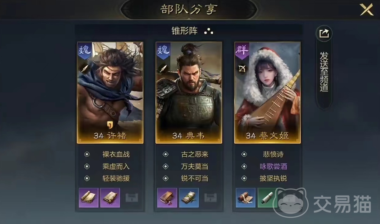 如果大家想要以典韦作为核心,那么小编推荐搭配许褚和蔡文姬,这样拥有两名魏国武将,而且都是枪兵擅长进行输出,蔡文姬作为远程弓兵,可以在后面添加各种状态,是现在稳妥的选择。虽然这样搭配并不是典韦最终极选择,但因为魏国曹操比较难以培养,在没有曹操的时候,这依然是比较出色的选择。