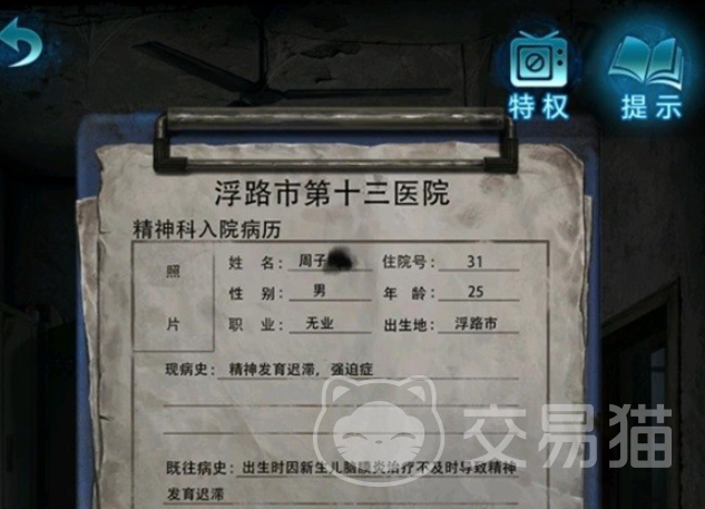 接下来回到接待室用钥匙把柜子打开,拿出照片,根据提示去拖动按钮,用门禁卡代替照片。顺利拿到申请表,重新又回到探望窗前,再点击玩偶的眼睛之后就可以马上知道保险柜的密码是什么。密码的顺序是75206,此时玩家可以重新回到第3个房间,顺利的拿到八音盒放到镜子前面的圆圈中。