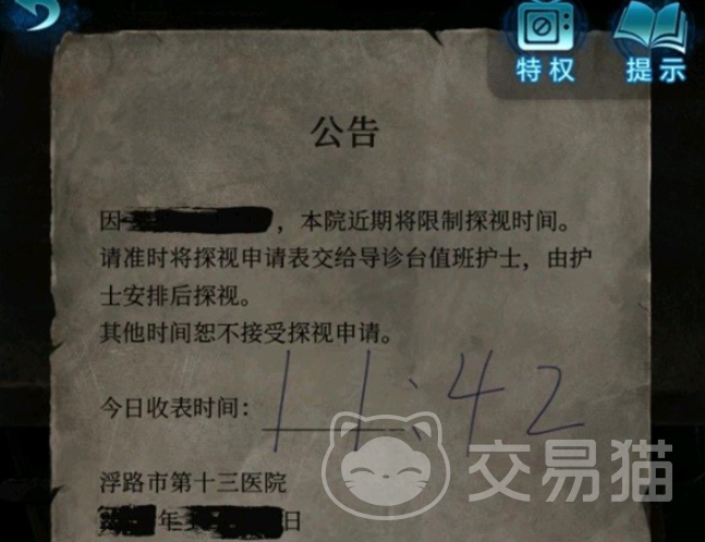 接下来的步骤很简单,可以调整闹钟暂停的时间更改成11:42,再顺利拿到申请表之后就可以打开第2个场景的门。根据探望口边上的病例,玩家也能够顺利的找到图案的密码获取吊扇,又把吊扇放回到架子上,重新回到原位,拿到蜡烛和钥匙。