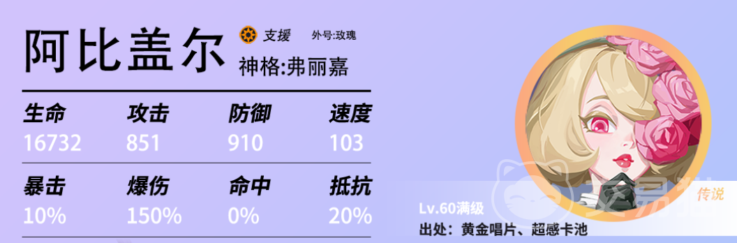 阿尔比尔的属性主要体现在防御、抵抗、速度和生命上,这四个属性都属于中上等水平,尤其是防御和生命,这让她能够承受较多的伤害,保证自己的存活。