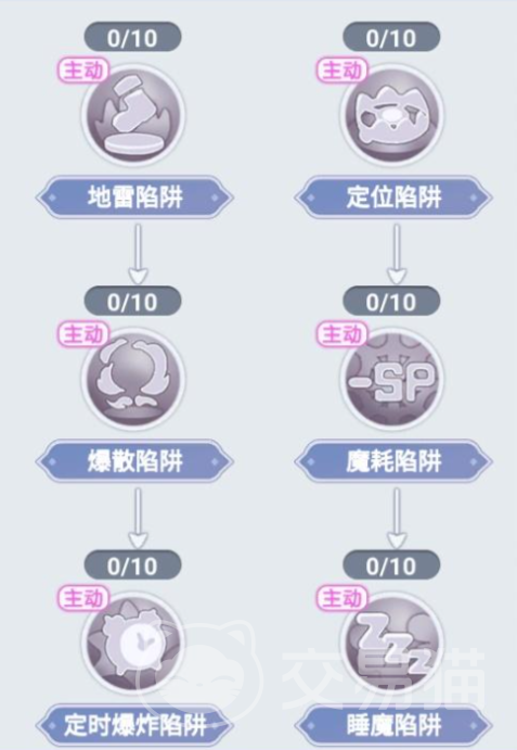 与训鹰高手流相比,陷阱流猎人的技能选择应该注重技能中的陷阱部分。在一阶转职的弓箭手时期,玩家们可以按照自己的操作习惯与游戏偏好进行技能的加点,但需要把三个被动都点到满级,转职成猎人后,建议玩家们可以先把【动物杀手】这个被动点亮,再将左侧的【训鹰术】、【钢制噱】和【猎鹰冲击】三个被动点亮,点完几个被动之后,再去选择右侧的【地雷陷阱】、【爆散陷阱】、【定时爆炸陷阱】,或是【睡魔陷阱】、【强光陷阱】、【魔耗陷阱】以及【定位陷阱】。