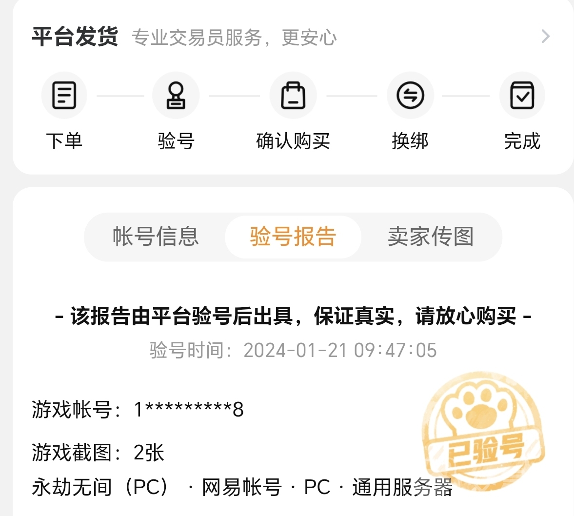验号报告在交易安全中扮演着重要的角色,它确保了在交易之前账号的真实性和可信度,为用户提供了参考和选择的依据。验号报告并非轻易获得,而是由专业团队在经过反复验证后开具的。购买账号时,认准带有验号报告的账号,这将有助于确保用户购得的账号是真实可靠的。通过依赖验号报告,用户可以更加安心地进行账号交易。