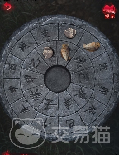 7、将【刑德盘】放置在如图位置,放上【蛋壳】,倒入【强力胶】、【砂石】,触发剧情