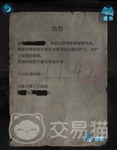 10、把【申请表】放到床头的缺失照片的申请表上,获得全新的【申请表】;触发剧情,打开第二个房间内,出现了新的病号服木偶,从它的眼睛里获得保险柜的密码转动顺序;打开保险柜,获得【金像】,面具男子再次出现,触发剧情