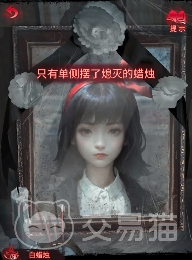 8、用【照片】开最后的门,出现解谜线索,根据线索摆放物品;打开房间,获得道具【蜡烛】;