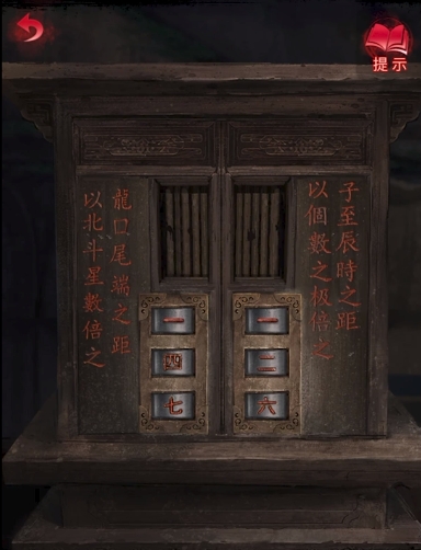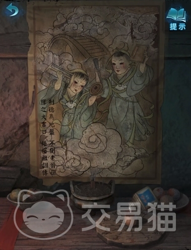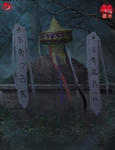 18、回到奚家,在桌子上放置【布帛】,用【加热的熨斗】进行熨烫,获得【帛画】,将【帛画】放置在这个位置,获得一个灵塔机关,从下往下按,要将6个佛像全部按出来才能解谜成功。